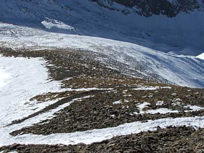 Als ich den Standort am 16.1.2005 auf einer Skitour besuchte, war ich überrascht, dass just jener Teil der Blaugrasrasen mit der höchsten Individuendichte praktisch schneefrei war.