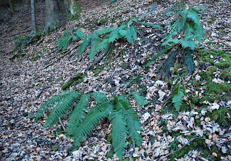Borstiger oder Südlicher Schildfarn Polystichum setiferum an der Untern Nas